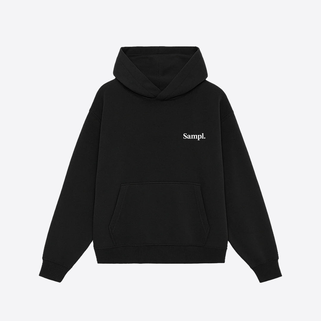 The Classic Black Hoodie is crafted from a heavyweight cotton blend with a soft, brushed interior for all-day comfort. Clean lines, minimal detailing and a relaxed, structured silhouette make it an easy staple for daily wear. Finished with reinforced stitching and subtle Sampl. branding, it’s built to live with you, season after season.